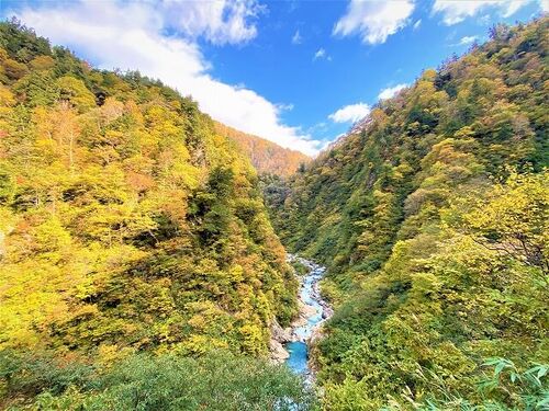 社内のソログループキャンプで、昨晩は遅くまで牡蠣三昧で盛り上がった園家山キャンプ場でしたが、本日は朝早くから撤収し次目的地に… 園家山キャンプ場の位置は黒部川の河口付近で、この後は上流の黒部峡谷にある祖母谷温泉キャンプ場に向かいますよ! 黒部…