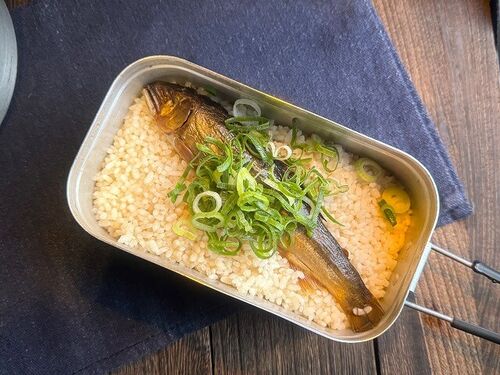 今回は四万十川沿いの道の駅で入手した鮎の甘露煮を使って、豪快にメスティンでそのまま炊いて鮎の甘露煮飯を作っていきます。