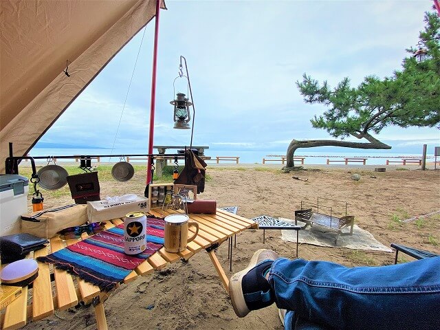 予約不要な無料キャンプ場で自由なら早朝に設営がすると、一日のんびりと遊べるのでおススメですね。