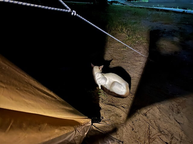 猫がいきなりテント内に入ってきて驚きましたが、天候の悪化もあって本日は早めに就寝し本日のキャンプは終了です。
