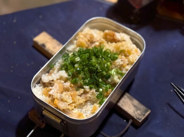 寝具類などの片付けをしながら、パスタソースを利用してメスティンで白みそ柚子飯を作りますが、簡単に作れる割りに上品な柚子の香りが感じられて美味しいです。