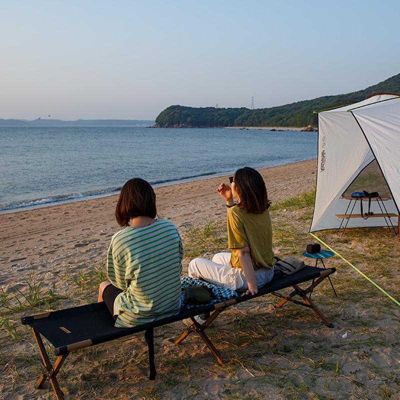 ローコットを使えば椅子代わりにもなり、テント内では下に荷物も置けて省スペース化も可能です。