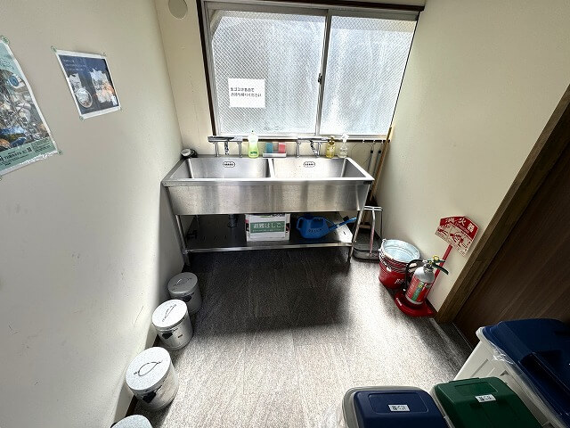 炊事場はキャンプ場に併設されており小規模ではありますが、完全屋内になっています。