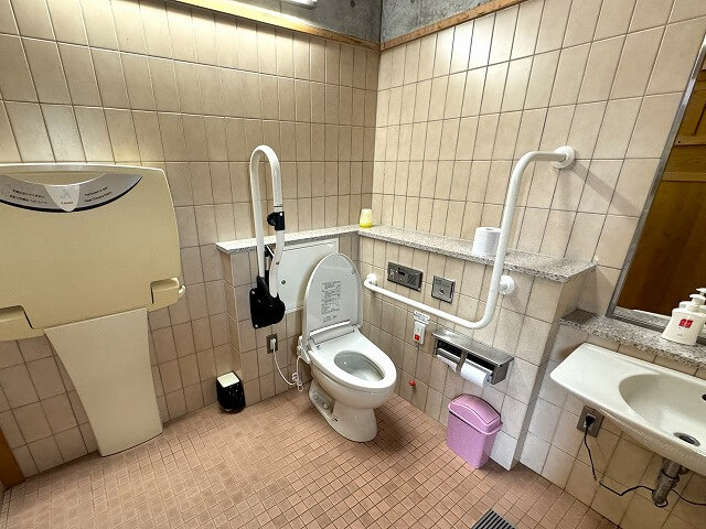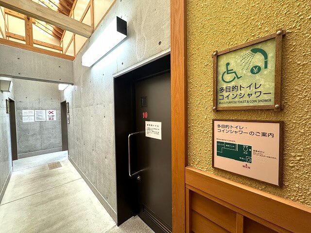 中は、トイレの他に多目的トイレ、コインシャワー、ランドリーといった連泊も可能な設備がありますよ。