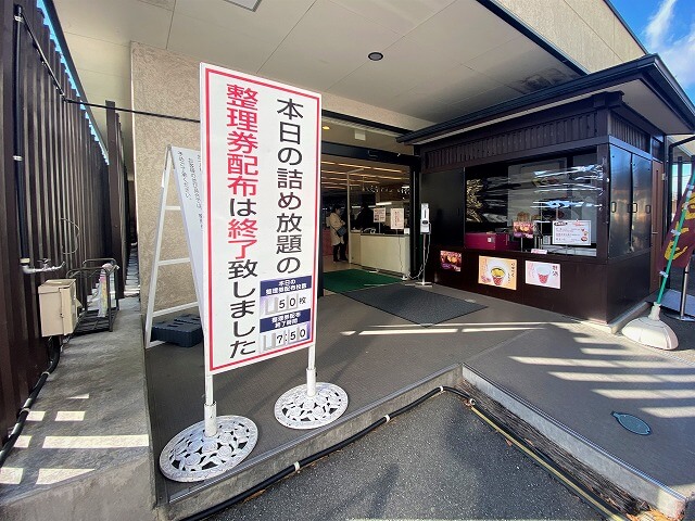 桔梗信玄餅工場テーマパークでの一番人気は「信玄餅の詰め放題」ですが、人数制限もあり整理券配布は7時50分に終わるという人気ぶりです!
