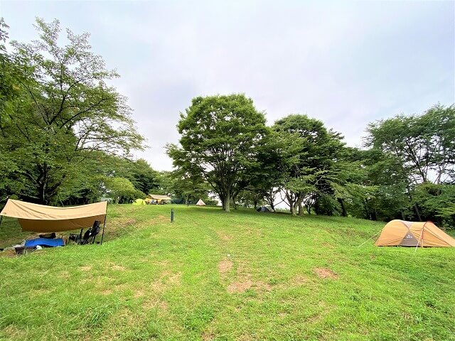 芥子坊主農園公園のテントサイトは西側斜面にありますが、数が少なく9区画しかありません。