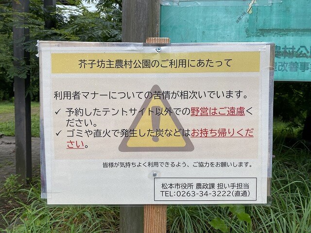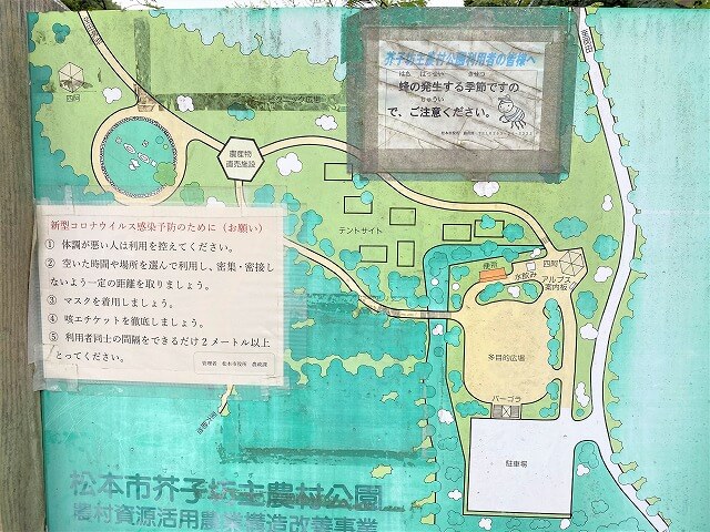 芥子坊主農村公園は、松本市内北側の山の中ある公園内テントサイトで無料のキャンプ場になっています。