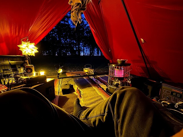 今回は冬キャンプでありながらスカートなしのテンマクパンダを利用しましたが、暖房器具のあって快適にのんびり過ごせましたよ!