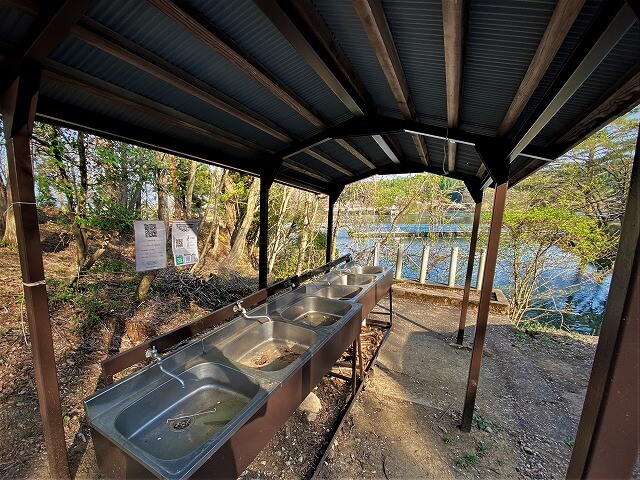 ただ、キャンプ場専用のトイレがなく、桜ヶ池公園内の公衆トイレを使わなければならず、少々遠いのがネックです。