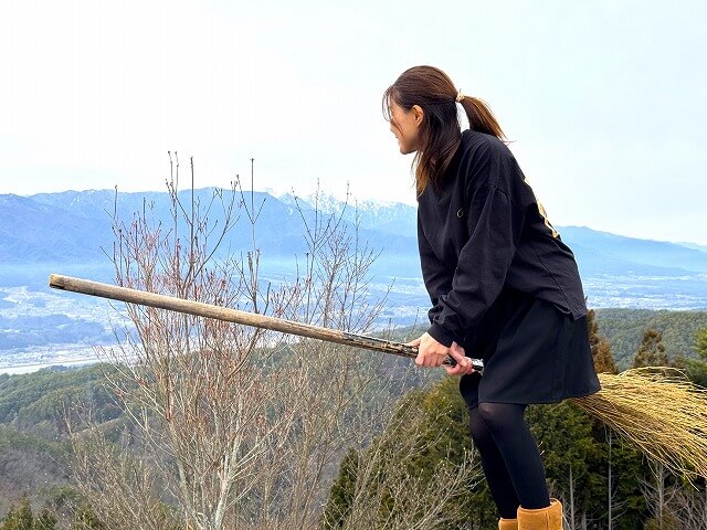 ここは伊那谷の見晴らしも良く、竹ぼうきがおいてあり魔女のように空を飛んでいる写真が取れますよ。