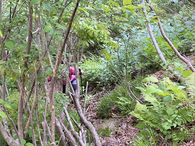 本来であれば最初から登山道はあったのだと思いますが、ここからはかなりの急登が二人の体力を奪っていきます。