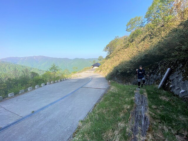 急な登山コースの変更もあって下調べをしておらず、すぐさま沢から急勾配の道を登る羽目になってしまい少々苦戦し無理やり舗装道に登ってコースの修正です。