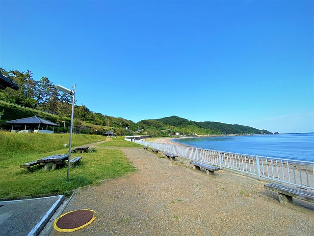 夏場には日本海に沈む夕日を眺める事ができて、2006年には環境省が選定した快水浴場(かいすいよくじょう)100選に選定されています。