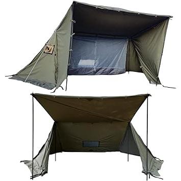 また、片方入り口にサイドフラップを立ち上げる事でタープのように使え、降雨時の出入りも楽々です。