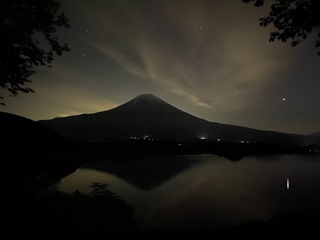 夜は月も出ているからか明るく、夜でも富士山がハッキリみえて最高です。