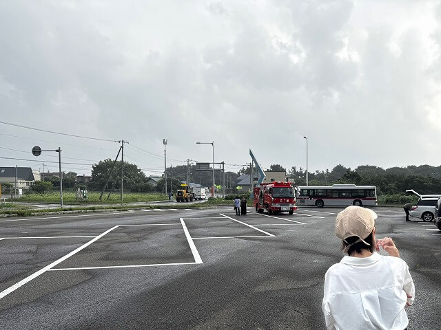 道の駅に戻ると地元の消防も来ており周辺自治体の状況を聞いてみますが、近くの川の氾濫や冠水は収まってきて、倒木で通行止めになっていた道も戻る事ができるみたいなのでまずは江差方面に戻ってみましょう。
