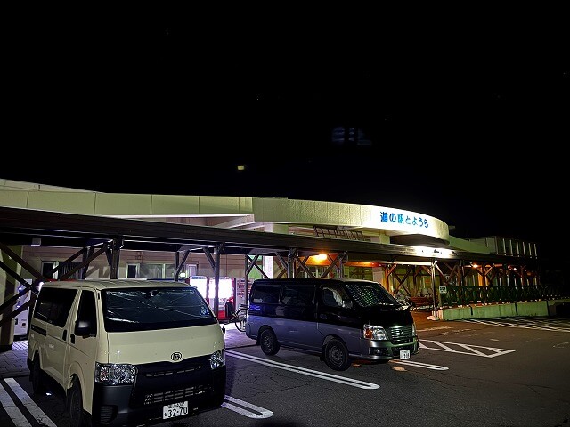 20時半頃に和の湯を出て一路本日の車中泊地である道の駅に向けて走り、途中買い出しをして23時頃にはようやく本日の宿泊地に道の駅 とようらに到着です。
