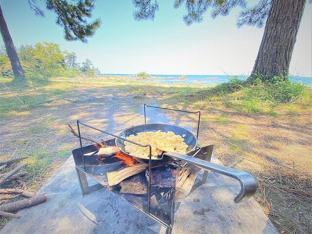 また、鉄製フライパンになっている事から、自宅でのIH調理や直火調理にもおススメで、持ち手を引っかけれるのでキャンプとの相性もバッチリですよ。