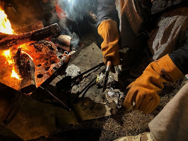 また、一緒に持ってきてくれた芋で焼き芋を作ってくれ中までホクホクで美味しく、やっぱり季節の物を楽しめて大満足です。
