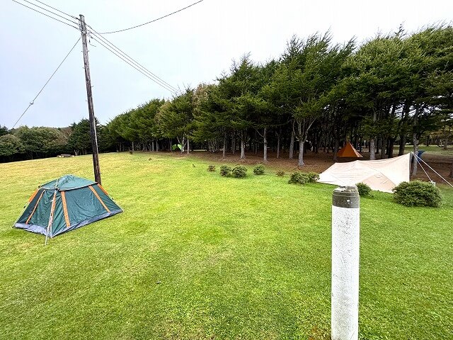 また、駐車場から階段を上がった先には大きな芝生広場になっており、こちらは平坦でペグ刺さりや水はけも良好ですよ。